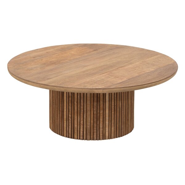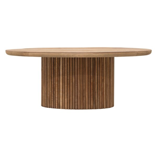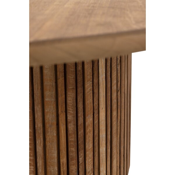 Coffee table Lagoon is designed as a calm and inviting centrepiece for the living space. The Lagoon tables feature elegant Mortex or recycled teakwood tops supported by a single round wooden column with slats, creating a balanced and timeless look. Soft rounded edges enhance the comfortable character, giving the table a warm and harmonious presence.