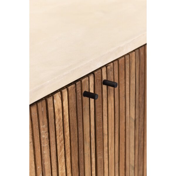 The Lagoon cupboard is designed as a refined storage solution with a calm, architectural presence. Crafted from recycled teakwood and finished with a Mortex top, it reflects a balance between sustainability and contemporary design. The rounded corners soften the silhouette and add a sense of harmony, making the Lagoon cupboard a timeless piece.