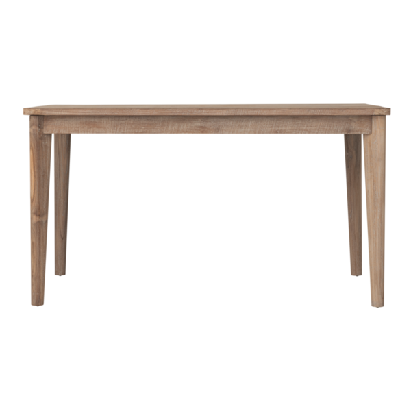 Dining table Apollo highlights the natural character of natural teak. With soft rounded corners and tapered legs placed at the very edge, it offers both visual lightness and generous seating space.