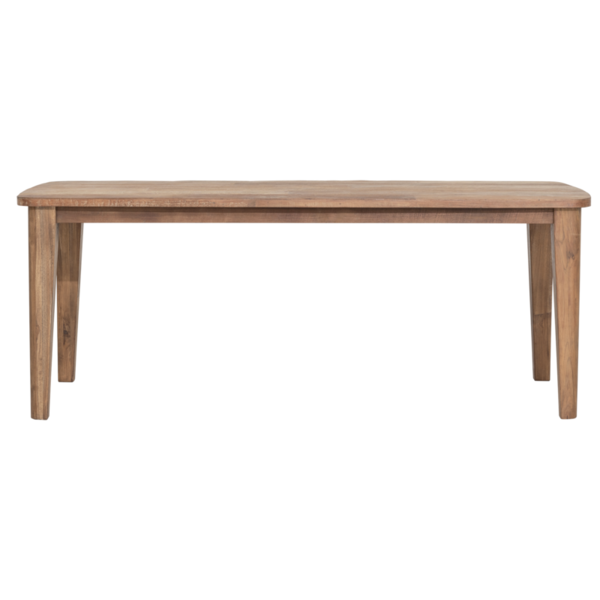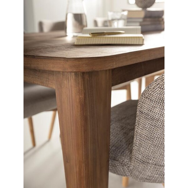 At first glance, the Bliss dining table appears traditional, but its rounded corners and gently curved lines along all sides make it thoroughly modern. The top rests on tapered legs, allowing for maximum seating and creating a spacious effect. Available in full teak or with a mortex top in the color sand.