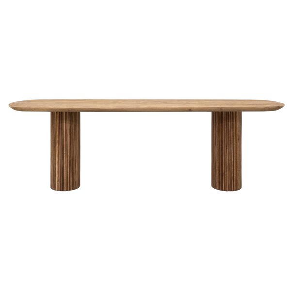 Dining table Lagoon is designed as a warm and inviting centrepiece for shared moments. The Lagoon tables feature elegant Mortex or teakwood tops supported by wooden columns with slats, creating a balanced and timeless look. Soft rounded edges add to the comfortable character, making the dining table a natural fit effortlessly into different styles.
