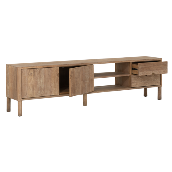 The Apollo TV stands are available in a range of layouts, offering a mix of open compartments, drawers and doors to suit different needs.