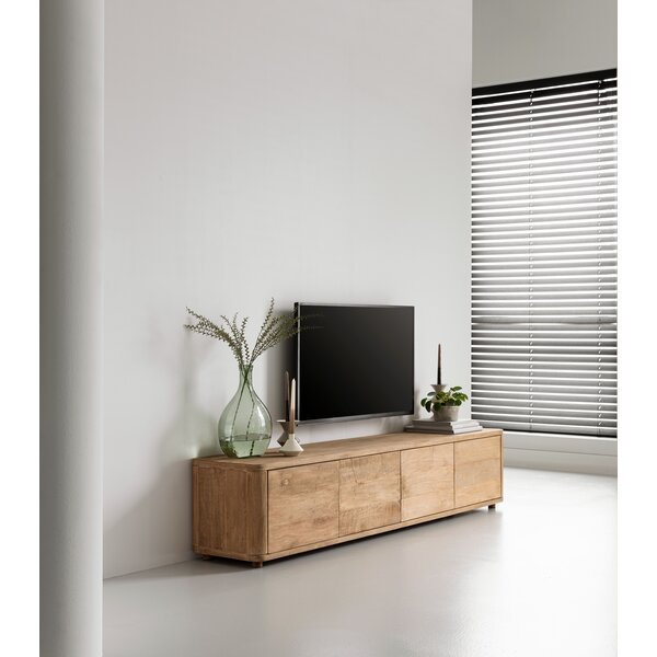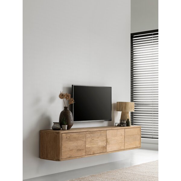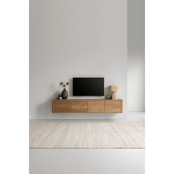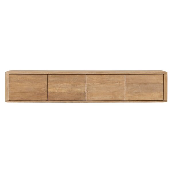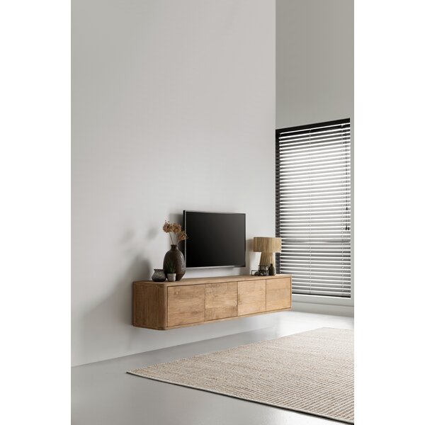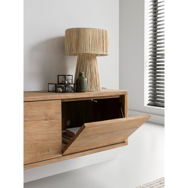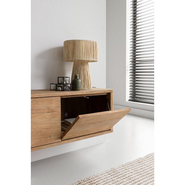 TV stand Nova features flap doors and is available in teak or with a travertine top. It comes standard with both legs and a wall-mounting system, allowing freestanding or wall-mounted use.