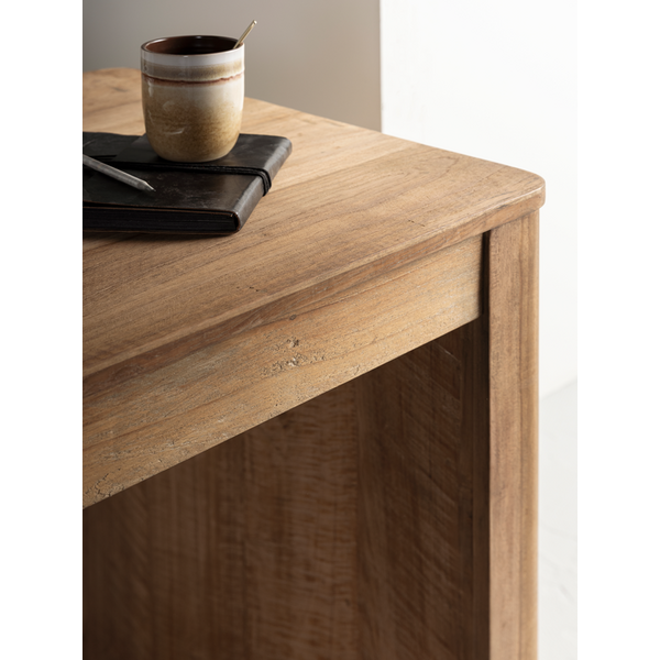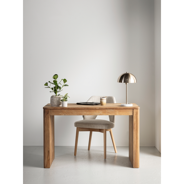 With its clean lines and solid silhouette, desk Bliss offers a calm and focused workspace. Available in full teak or with a mortex top in the color sand.